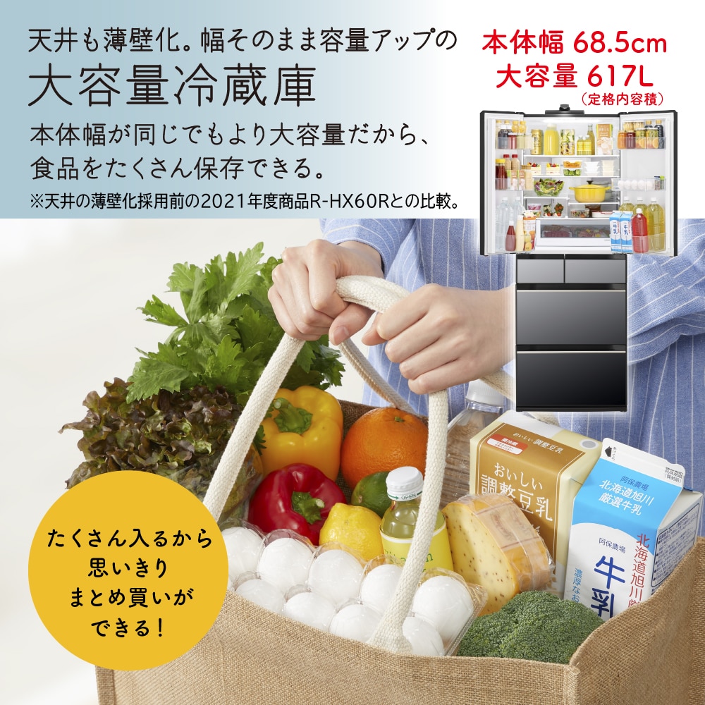 ●幅68.5cmでゆとりの大容量617L