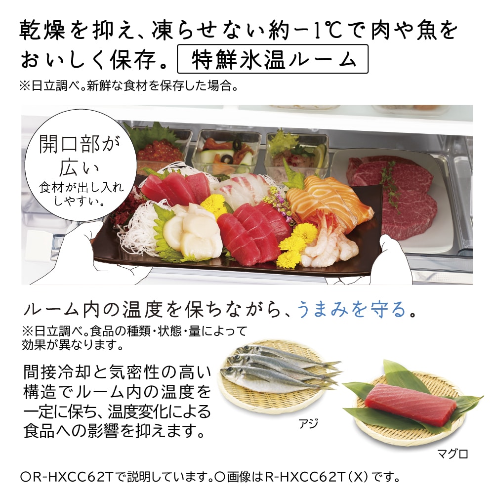 ●乾燥を抑え、凍らせない約-1℃で肉や魚をおいしく保存(※2)「特鮮氷温ルーム」
