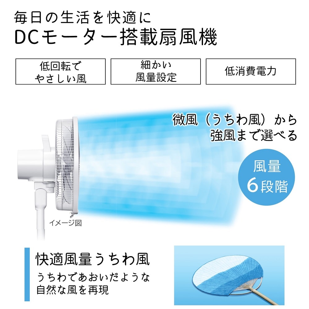 <微風(うちわ風)から強風まで選べる風量6段階>