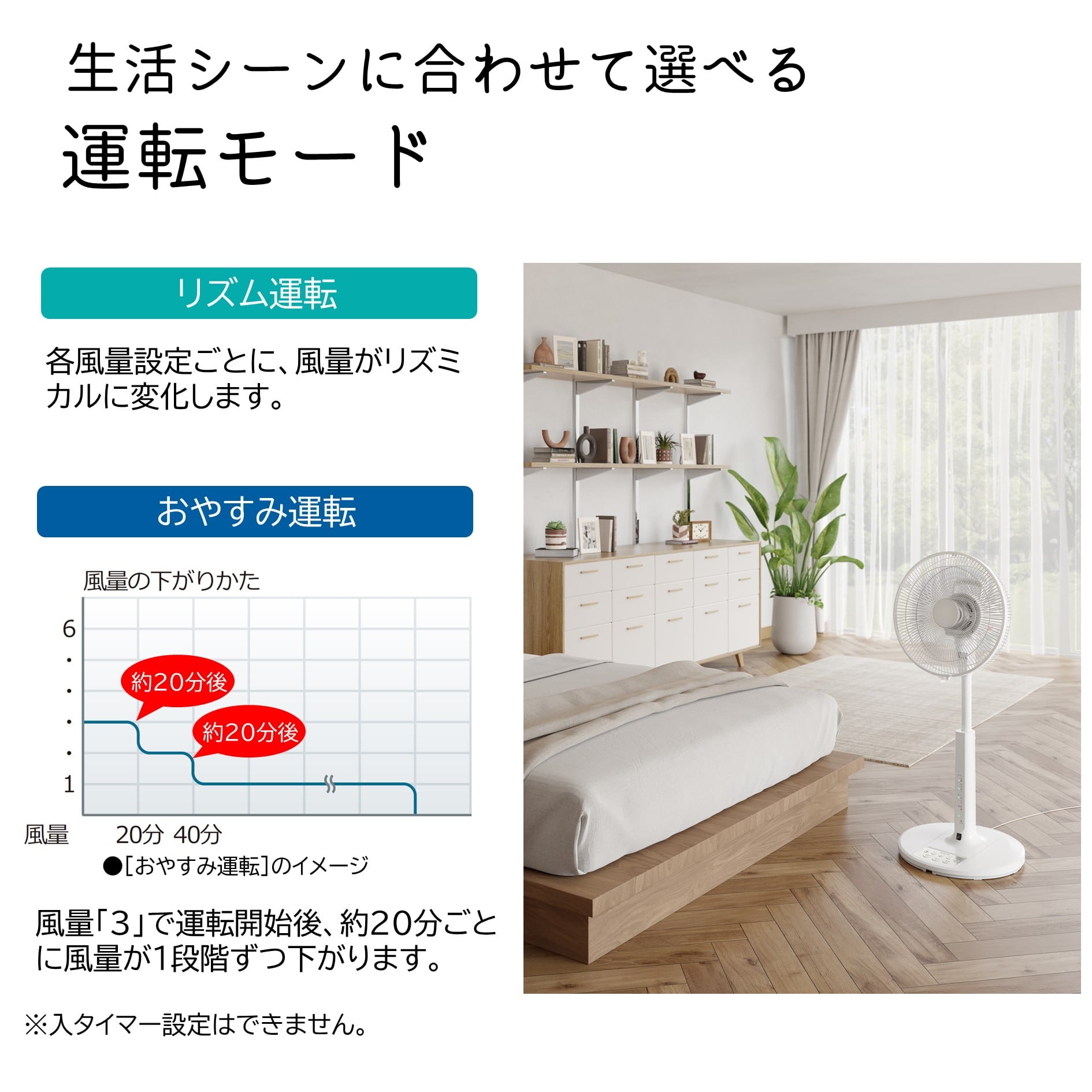 DCモーターの低速回転により、緩やかでやさしい微風運転を実現。