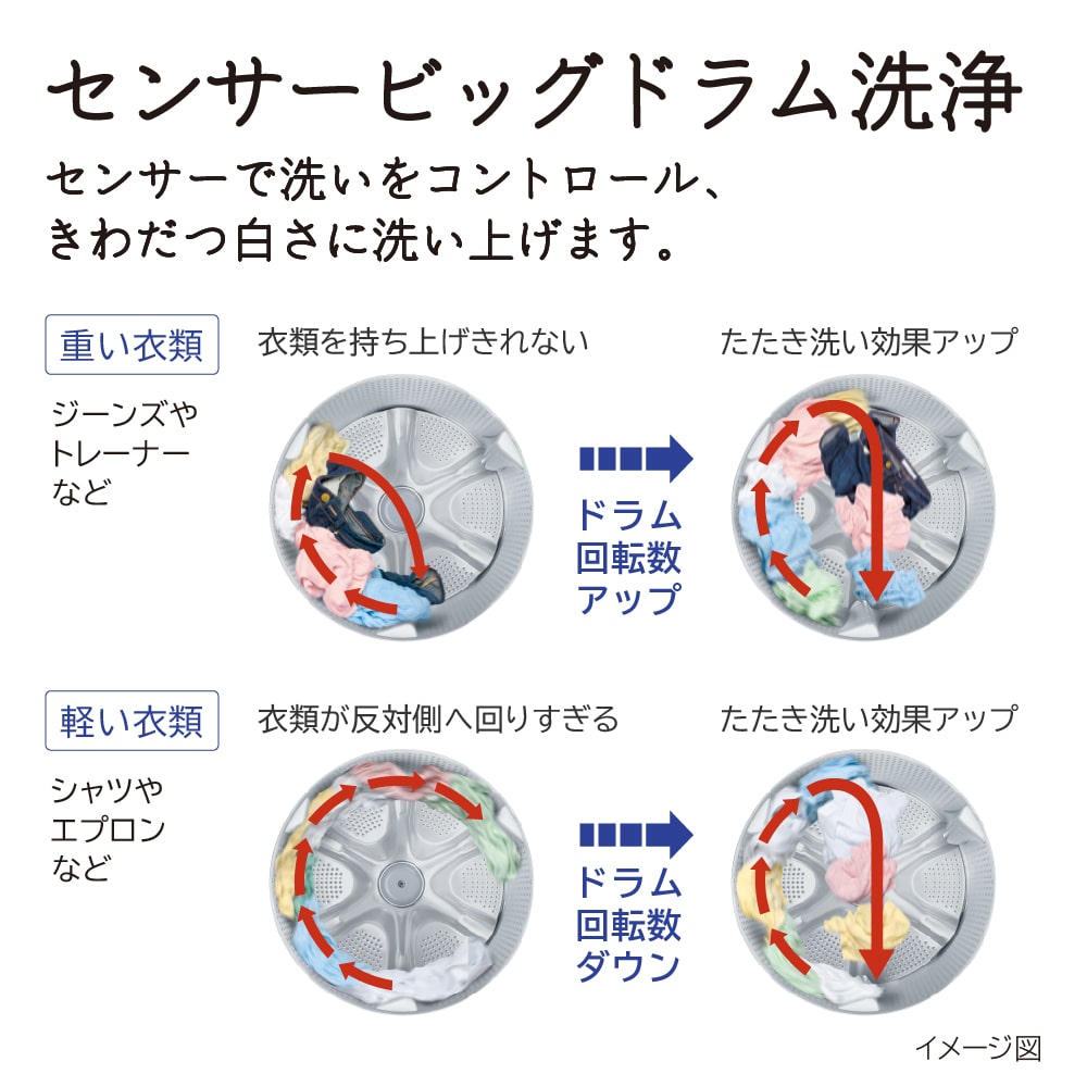 ●「センサービッグドラム洗浄」できわだつ白さ