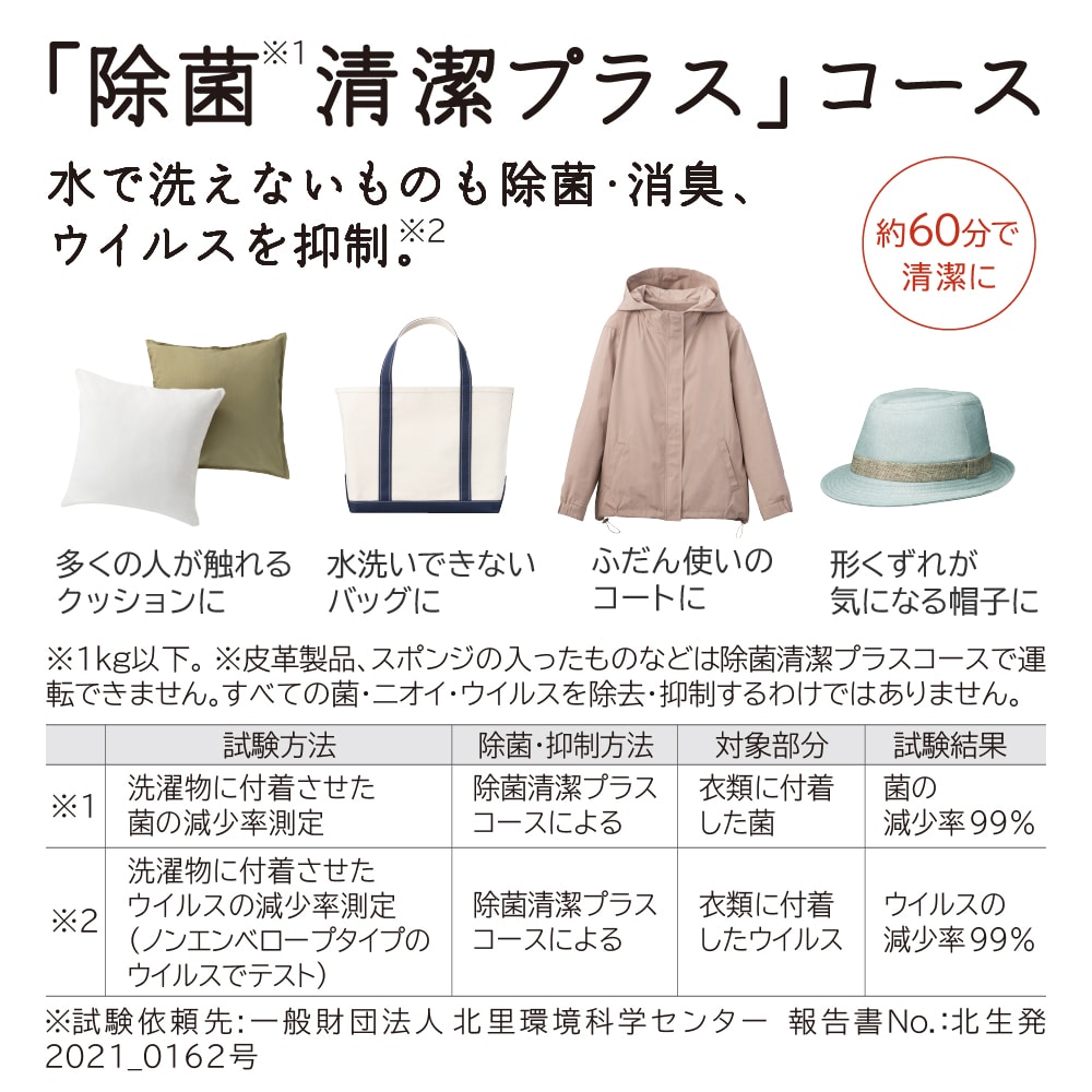 ●水で洗えないものも除菌・消臭・ウイルス抑制「除菌清潔プラス」コース