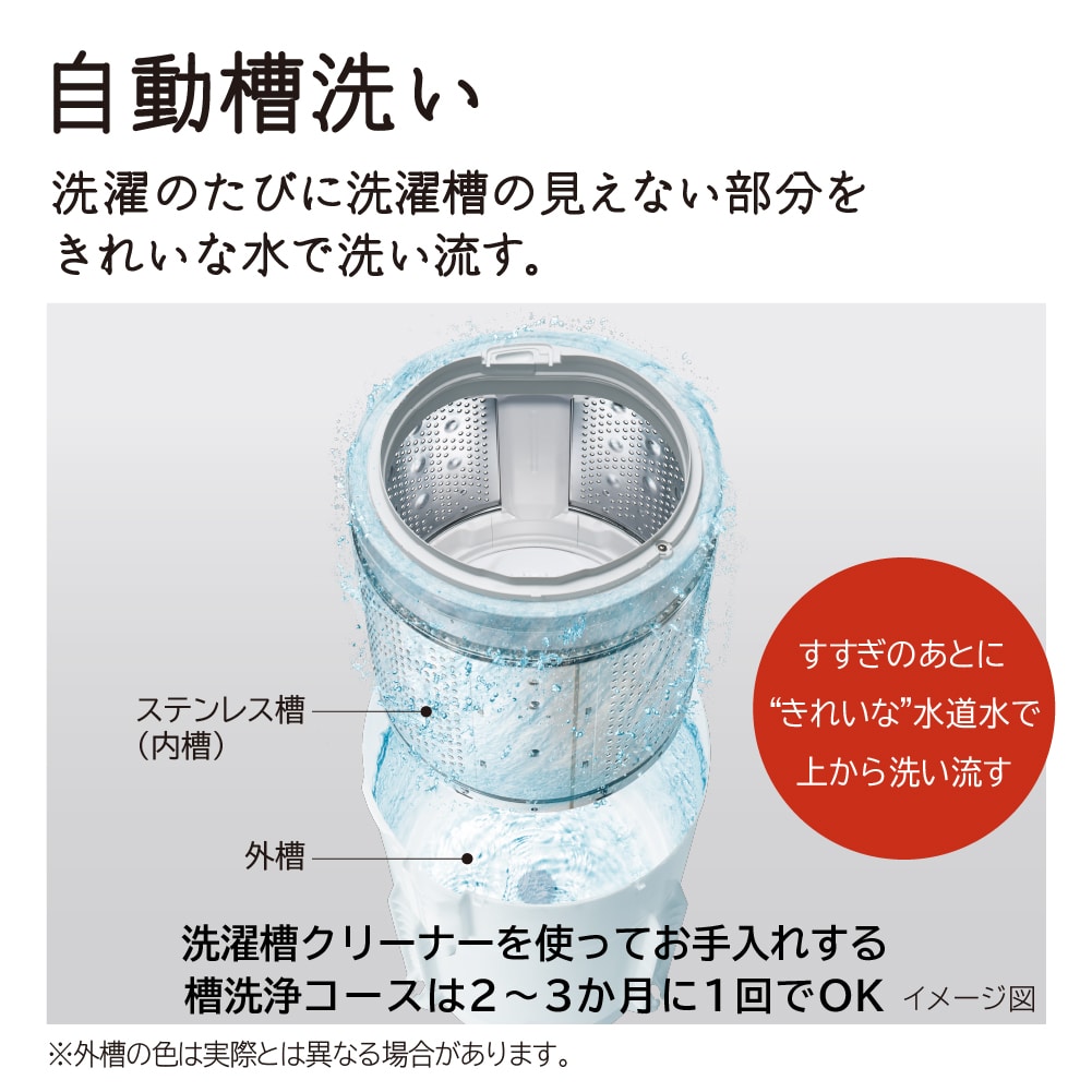 ●洗濯槽の見えない部分を洗い流す「自動槽洗い」