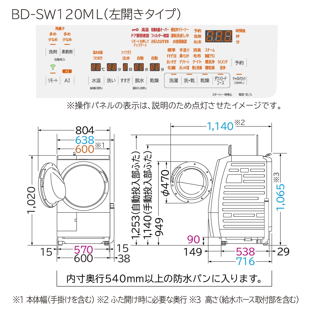 ドラム式洗濯乾燥機( ビッグドラム )BD-SW120ML W 在庫:あり