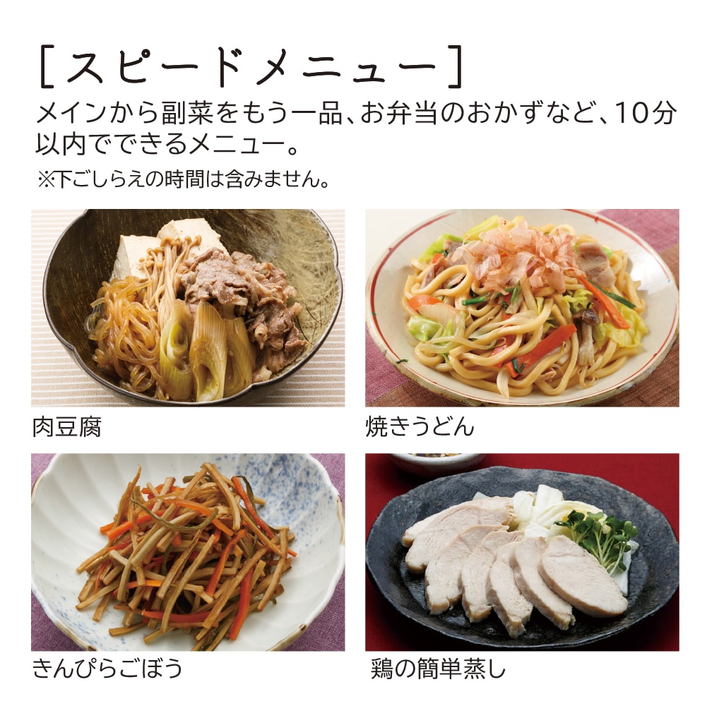 その他「ボウルメニュー」や「冷凍食品パリッと調理」「スピードメニュー」なども搭載。