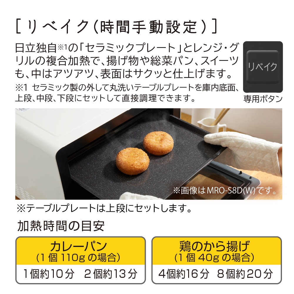 日立独自(※)の「セラミックプレート」とレンジ・グリルの複合加熱で、揚げ物や総菜パン、スイーツも、中はアツアツ、表面はサクッと仕上げます。
