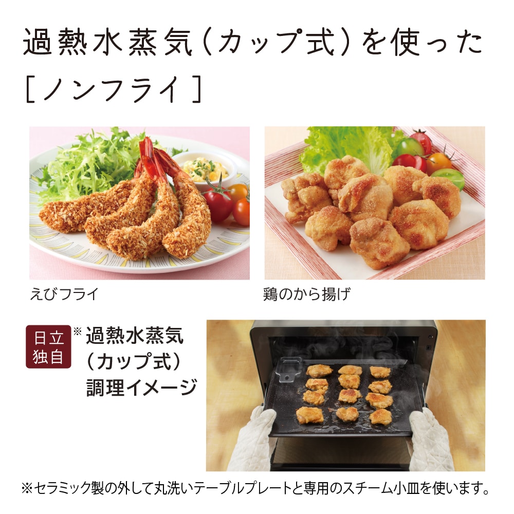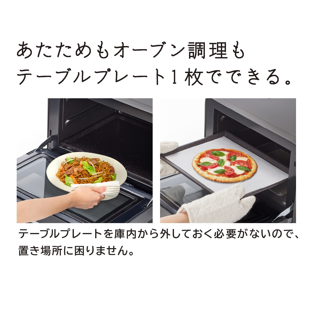 庫内底面に日立独自「外して丸洗いテーブルプレート」を採用。汚れても外して洗えるから清潔。セラミック製のテーブルプレートで調理後の汚れを落としやすく、お手入れも簡単です。