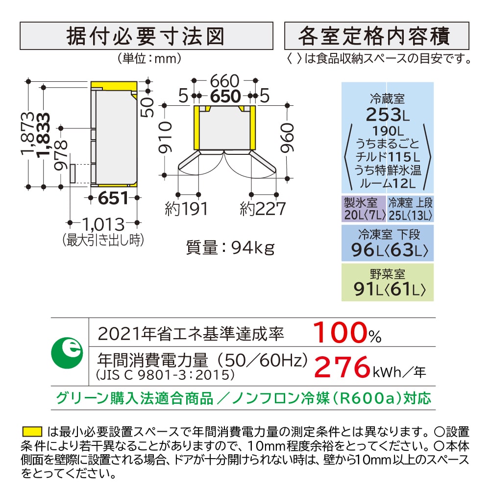 ※1 出荷時は「まるごとチルド」設定。設定時は消費電力量が増加。ドアポケットは「まるごとチルド」には含まれません。