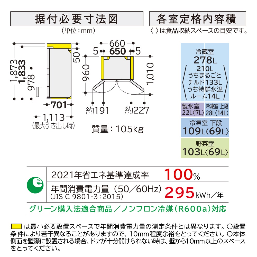 ※1 出荷時は「まるごとチルド」設定。設定時は消費電力量が増加。ドアポケットは「まるごとチルド」には含まれません。