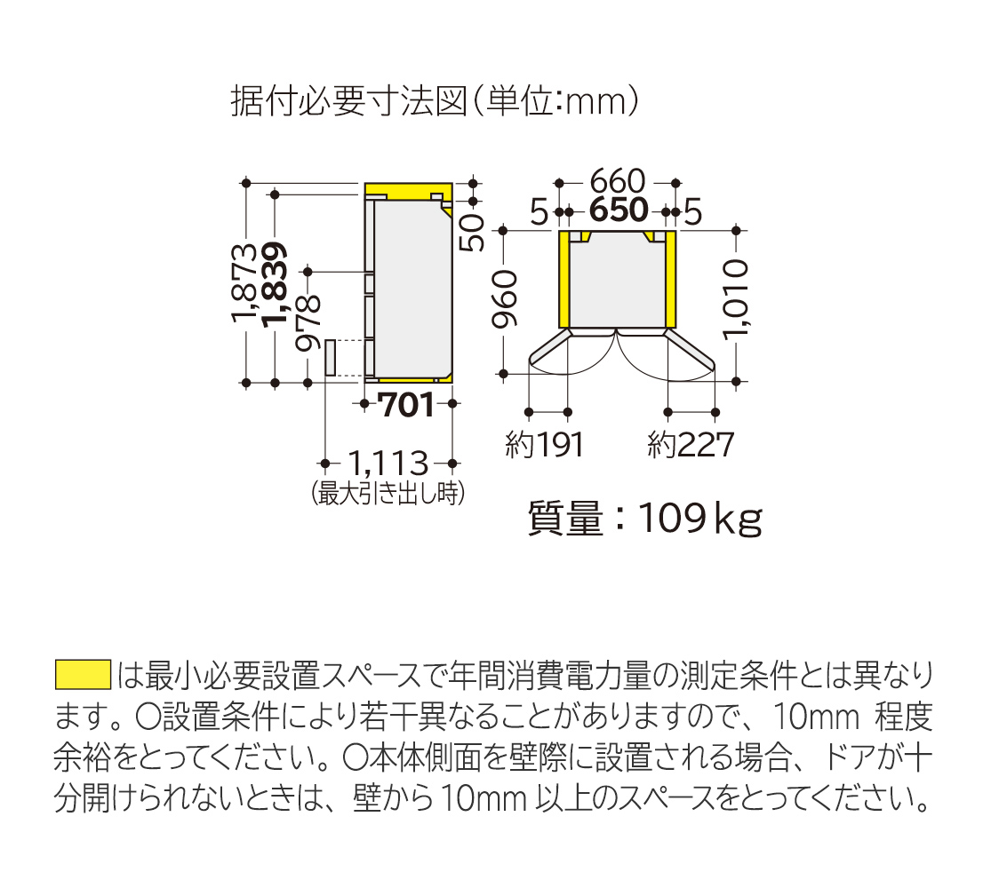 幅650mm × 奥行701mm × 高さ1839mm