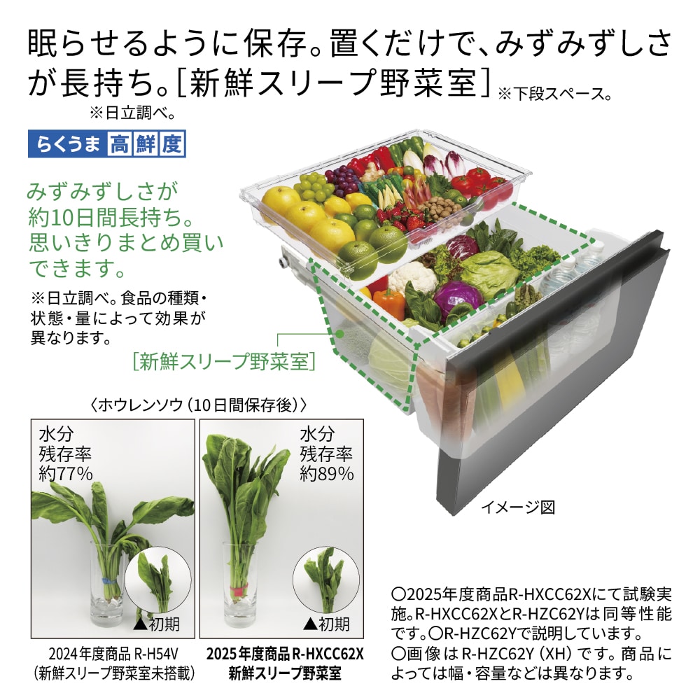 冷蔵室も冷凍室も野菜室も、設定いらずでおいしく保存。(※2、※3)